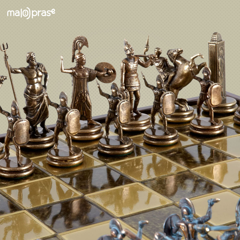 Unikatan šahovki set inspirisan mitologijom antičke Grčke. Velika šahovska tabla dimenzija 48 x 48 cm u sebi skriva intrikantne šahovske figure.